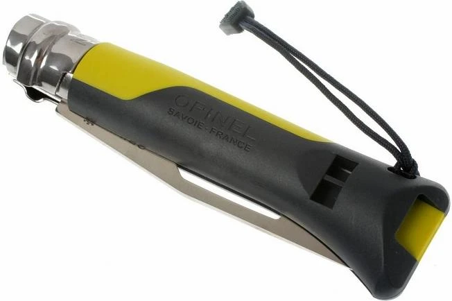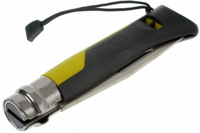 Het bekende Opinel zakmes in een moderne uitvoering. De handgreep is van kunststof en aan de achterkant voorzien van een fluitje (110 decibel) dat onder alle omstandigheden werkt. Het kunststof is vochtbestendig en kan gebruikt worden tussen -40ºC en 80ºC. Het lemmet van Sandvik 12C27 roestbestendig staal is halfgekarteld zodat bijvoorbeeld touw makkelijk door te snijden is. Ook is het lemmet voorzien van een harpsleutel (van 2,5-5,9 mm). Kortom, ook een heel handig mes voor watersportliefhebbers.